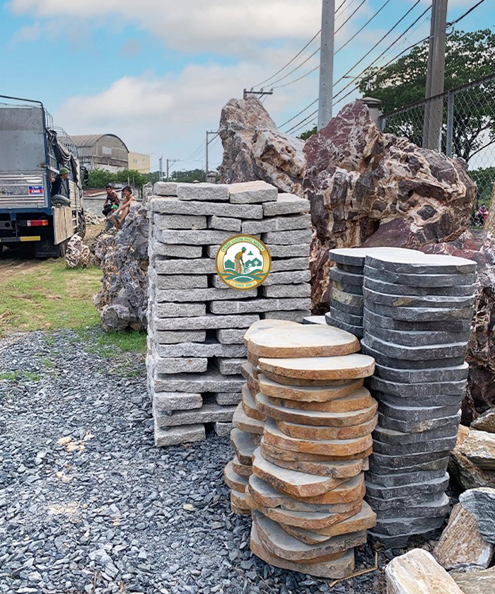 | Đá bước dạo xanh rêu | Màu xanh rêu tự nhiên, bề mặt nhám, hình tròn/ô-van | Sân vườn biệt thự, resort, tiểu cảnh |