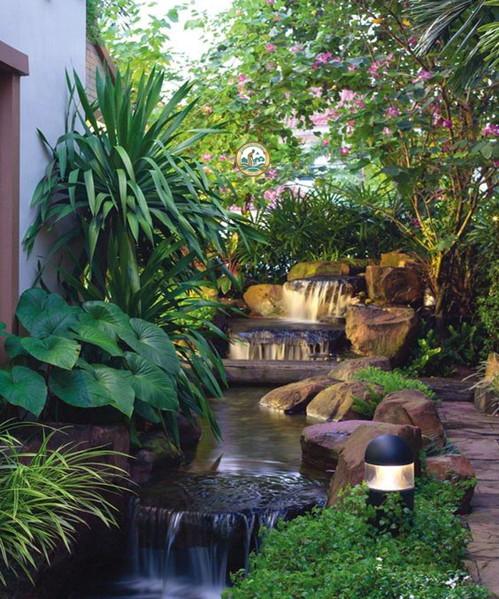 Một thác nước nhỏ với tiếng róc rách trong vườn hoặc ngay trong phòng khách sẽ khiến không gian trở nên sinh động, ấn tượng hơn. Nó biến những góc chết thành khu vực nghệ thuật đầy sức sống.